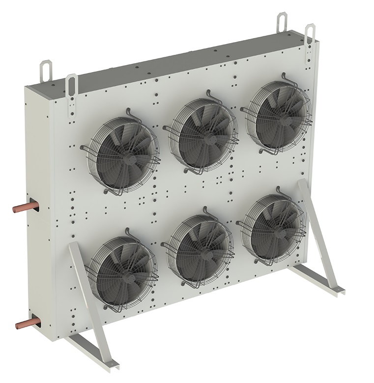 Конденсаторы предназначены для выносного монтажа при присоединении к ним прецизионных кондиционеров, приточных установок с системой непосредственного испарения. Основной агрегатор и выносной конденсатор соединяется между собой фреонопроводами хладагента. Такая конструктивная схема позволяет монтировать прецизионный кондиционер и приточную установка внутри помещения, а конденсатор на улице (на крыше, на наружной стене и т.п.).